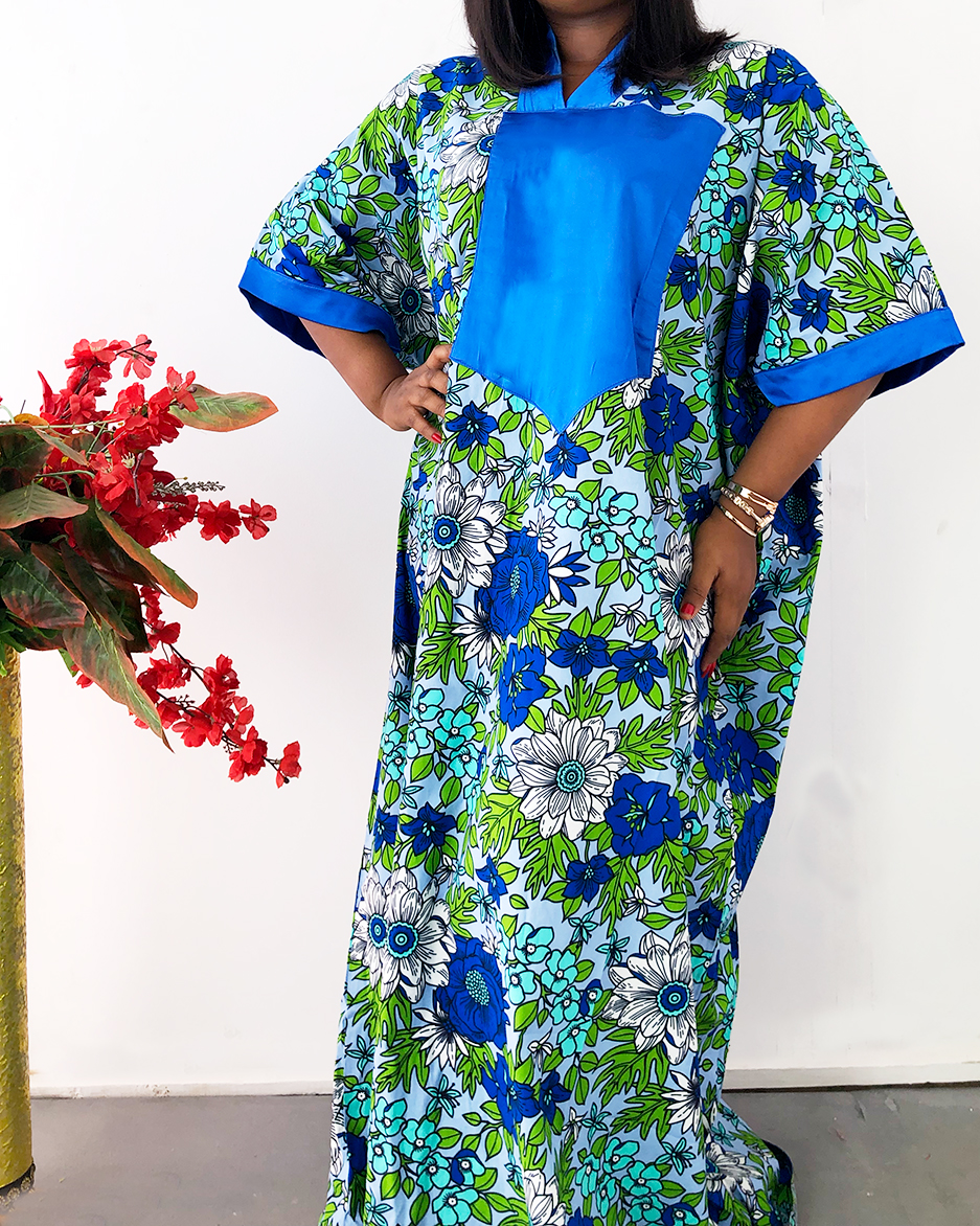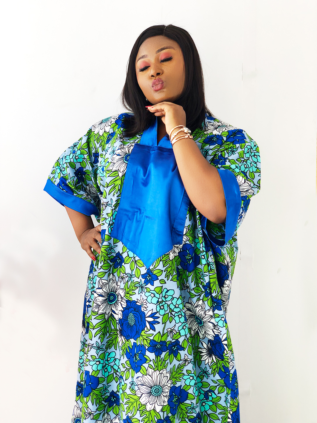 Blue bubu dress made out of premium ankara fabric, giving the rich aunty vibes.