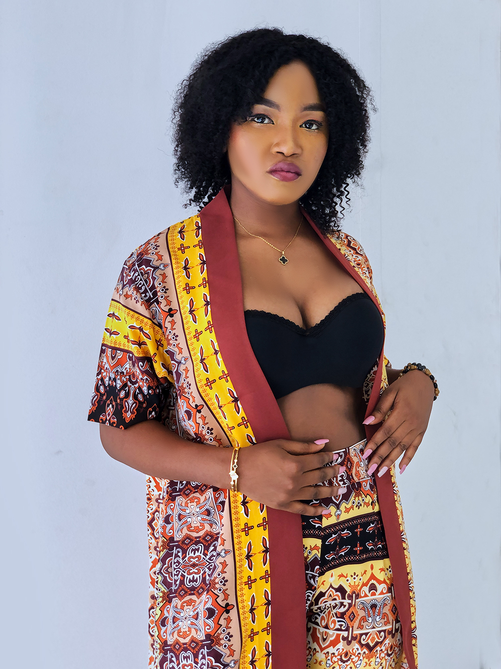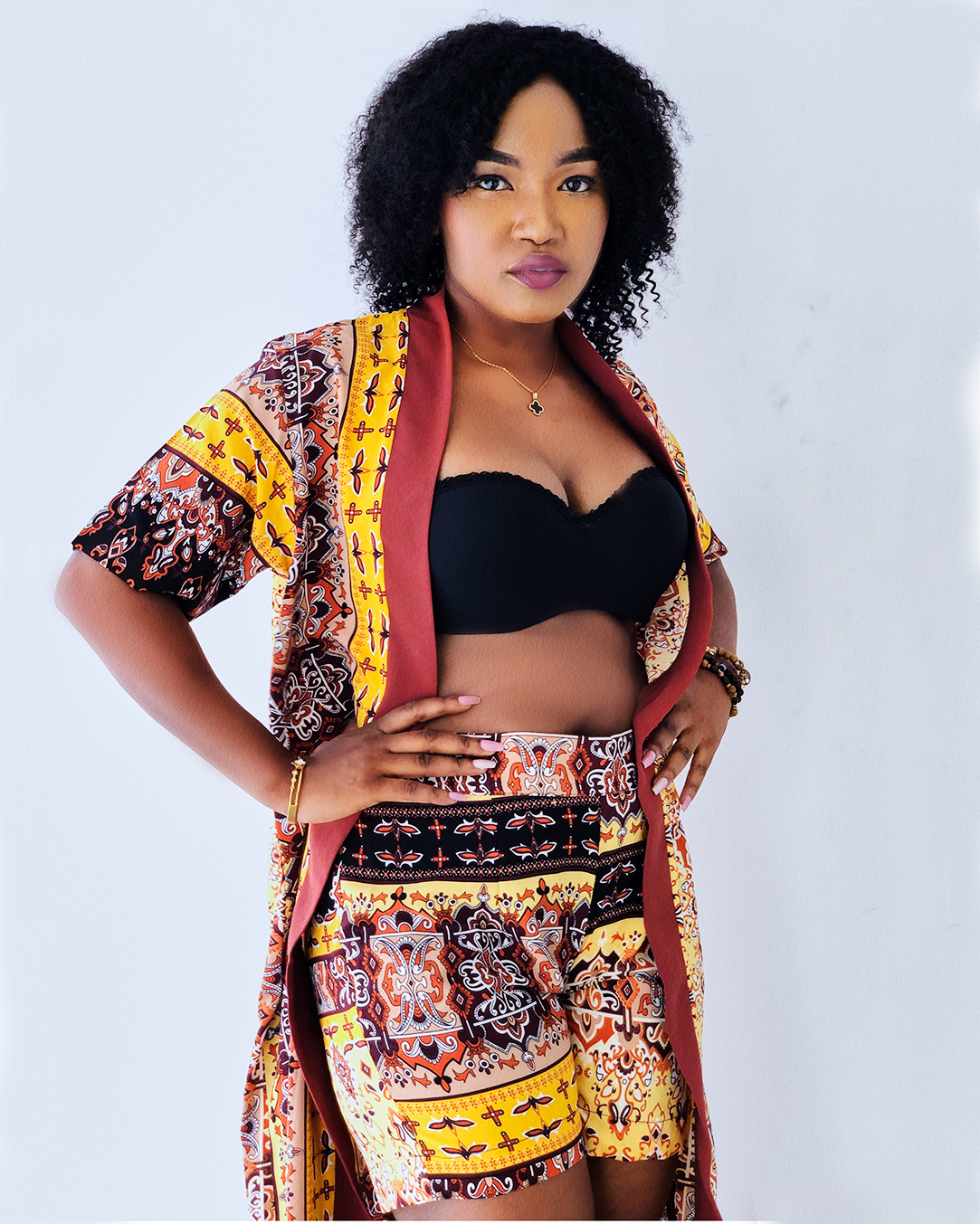 Elevate your style with our gorgeous kimono gown & short set. Perfect for special events, the set features a stunning floral design and comfortable fabric. Order now for a look that will turn heads!