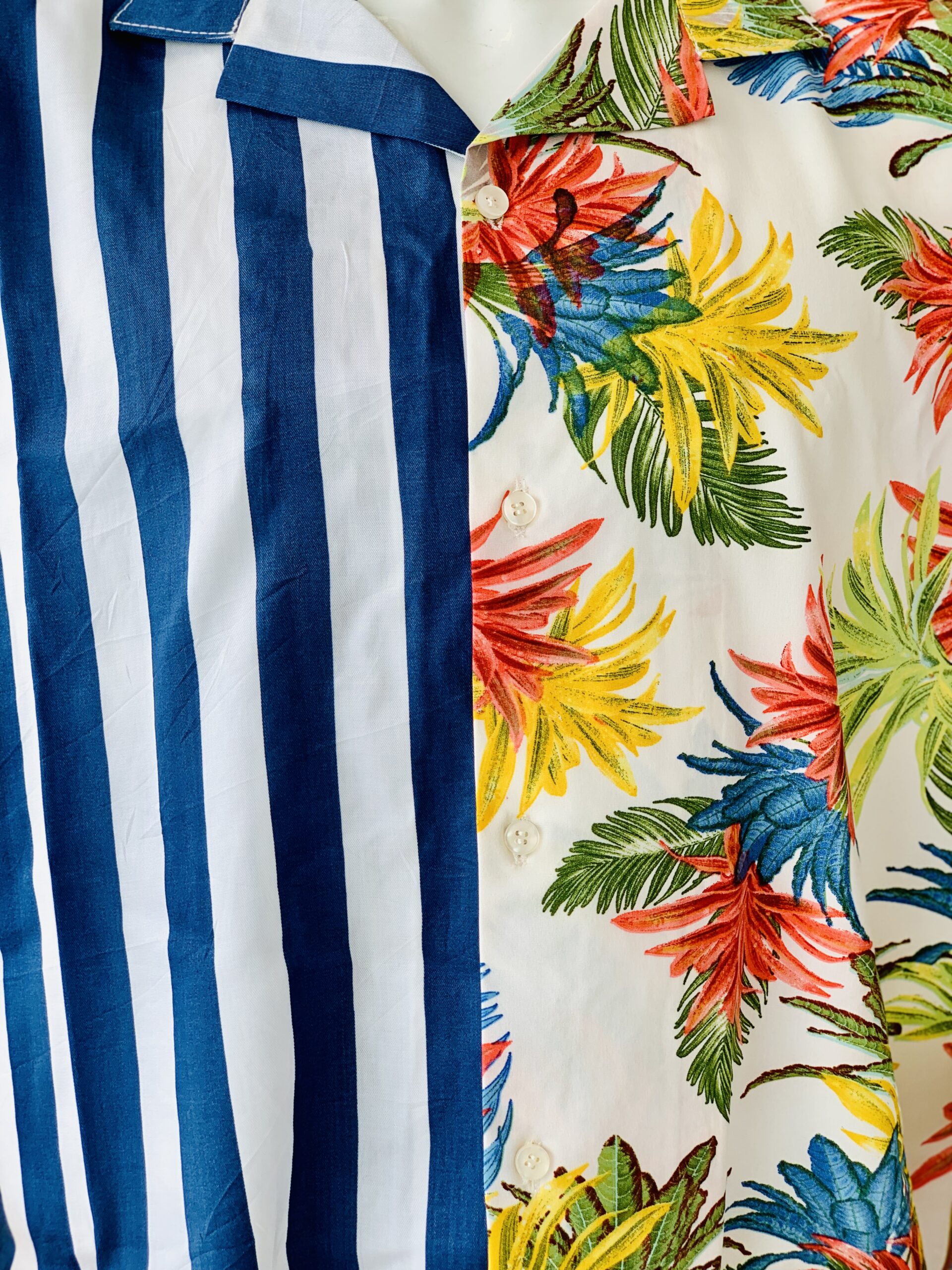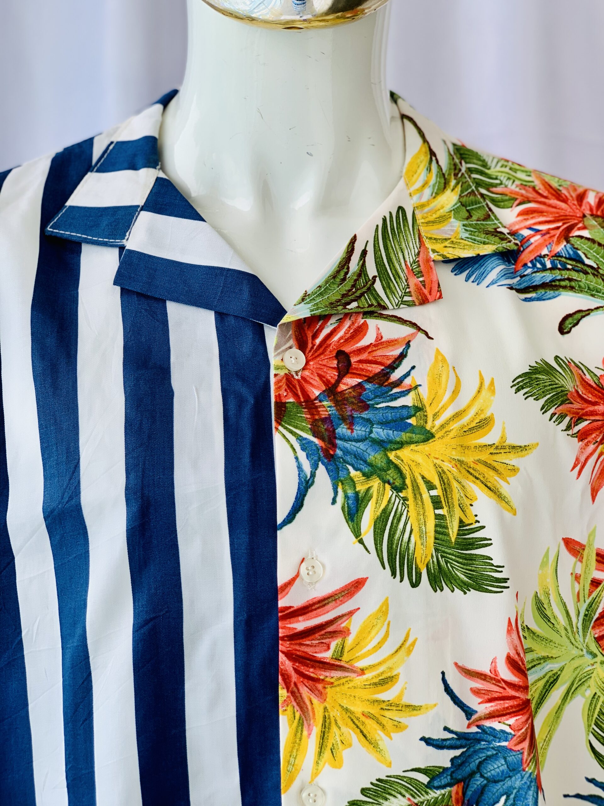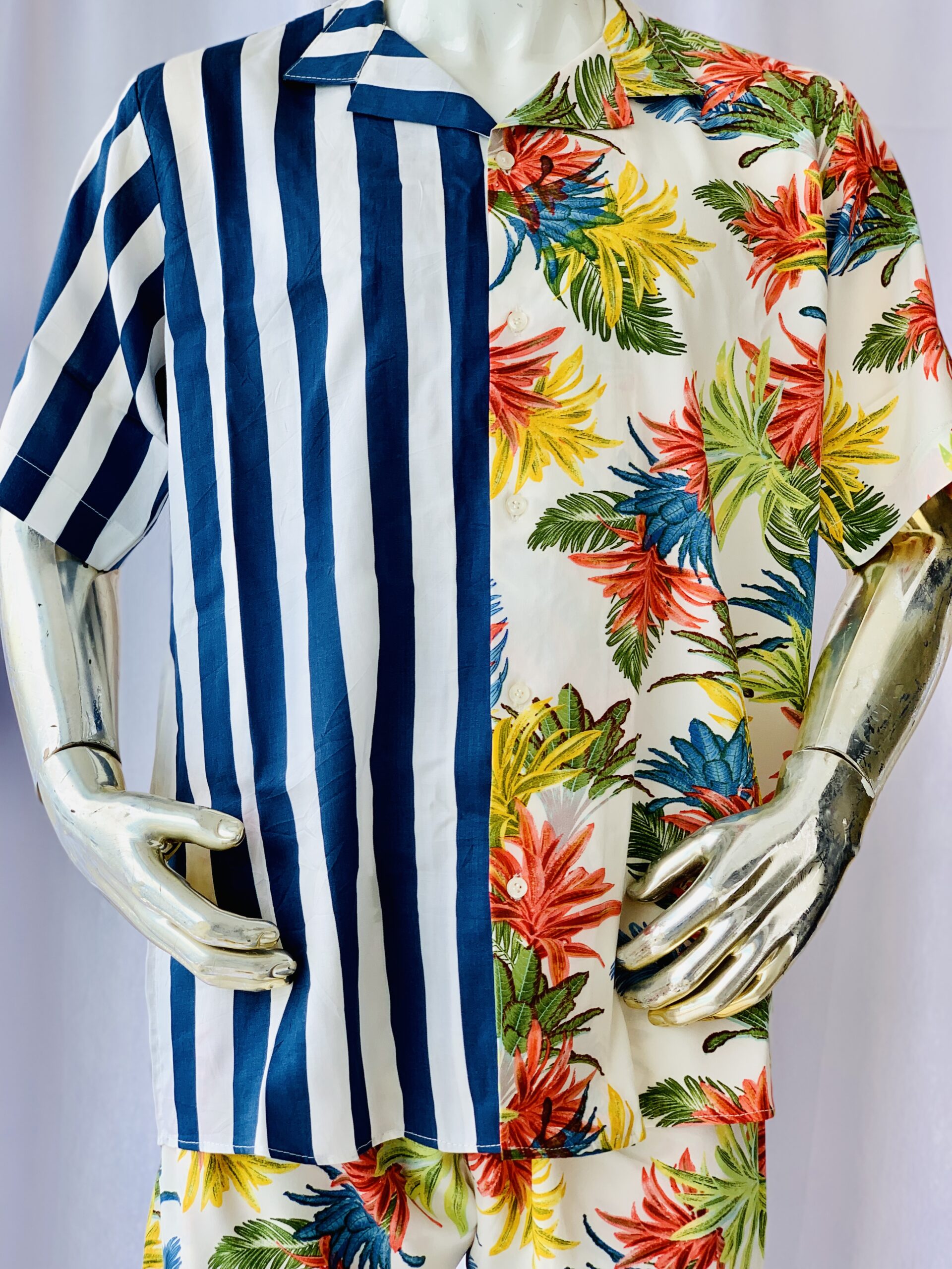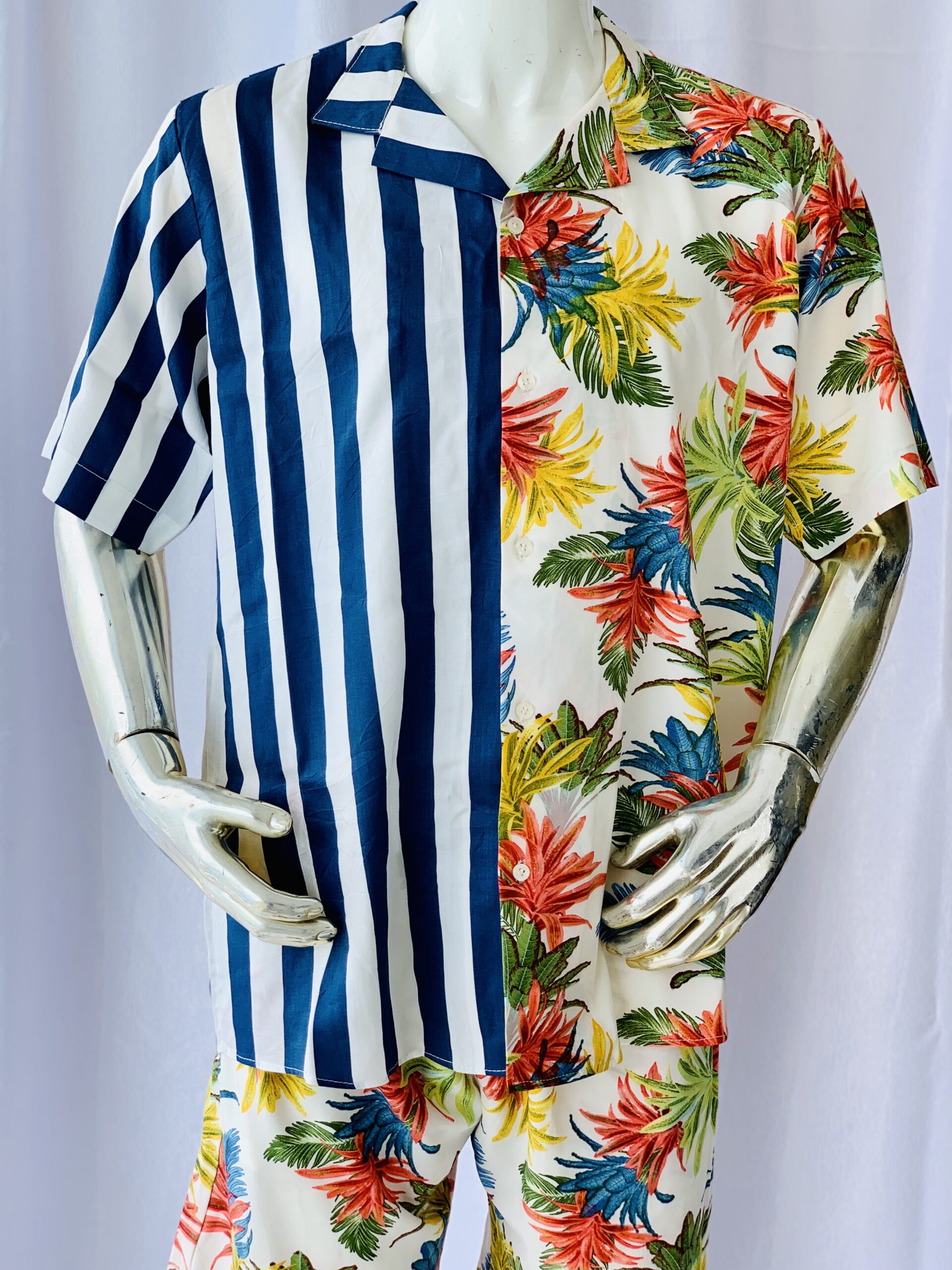 Blue Stripped and Floral combined shirt made out of luxury crepe fabric. This is a casual outfit that can be worn to the beach and all casual occasions.